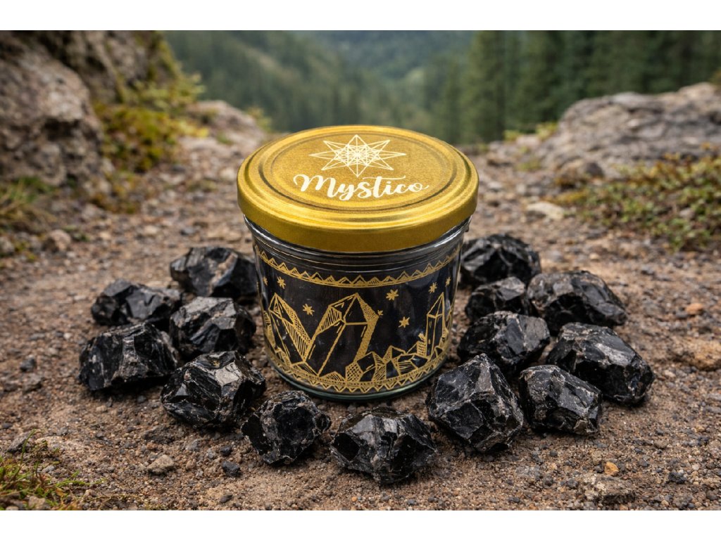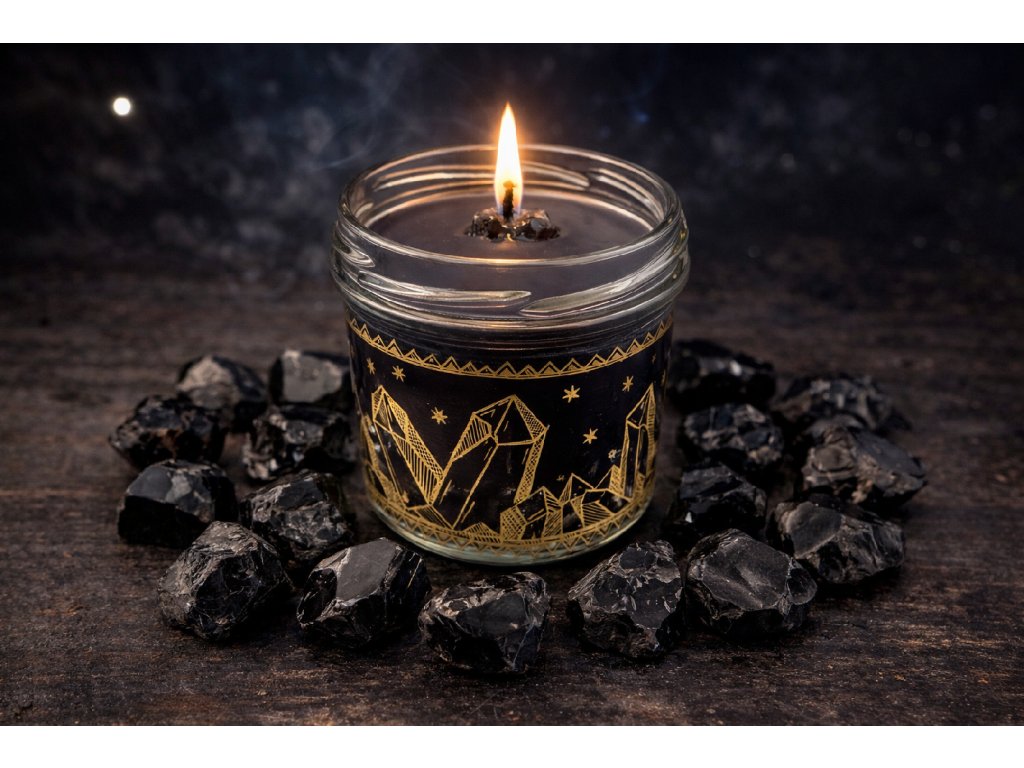 Uvnitř svíčky se ukrývá tromlovaný drahokam obsidián 💎🖤 – jeden z nejsilnějších ochranných kamenů vůbec. Obsidián je po staletí využíván jako štít proti negativním energiím ⚡, závisti 👁️🗨️ a černé magii 🕯️. Pomáhá odrážet škodlivé vlivy a posiluje vaši vnitřní sílu 💪✨.
