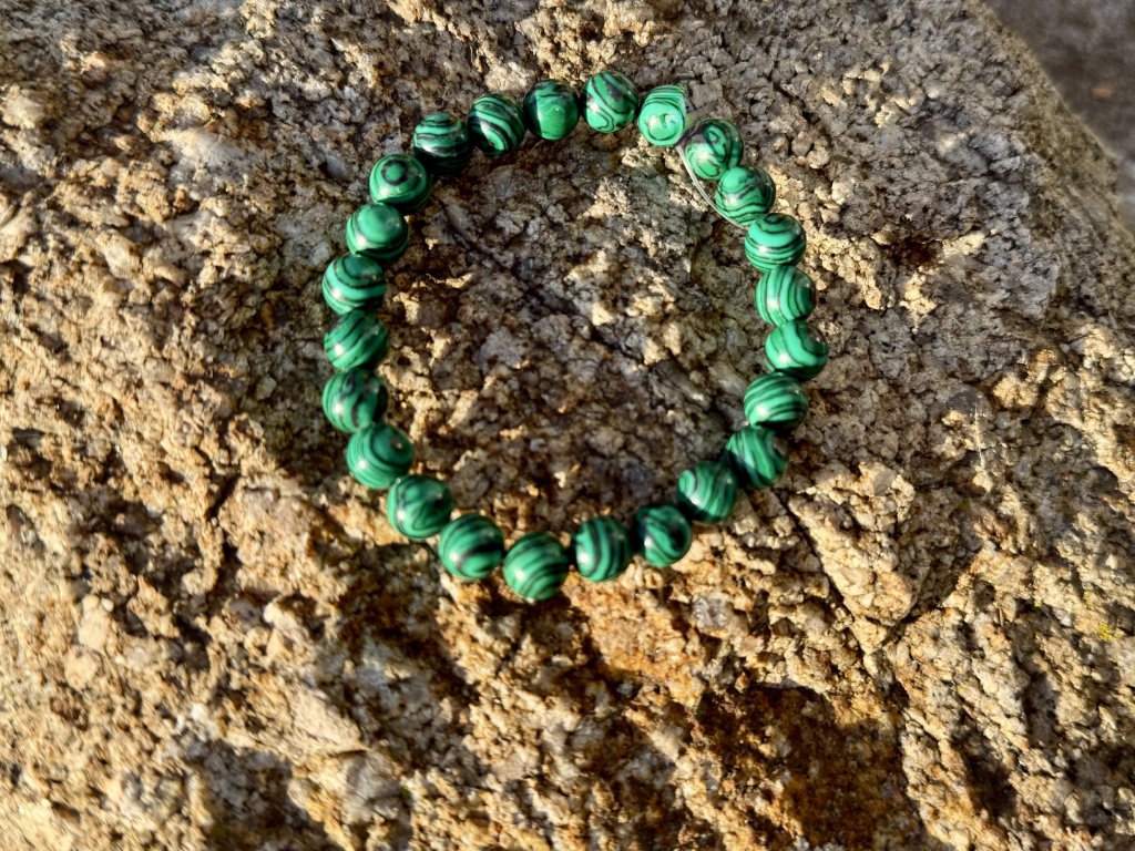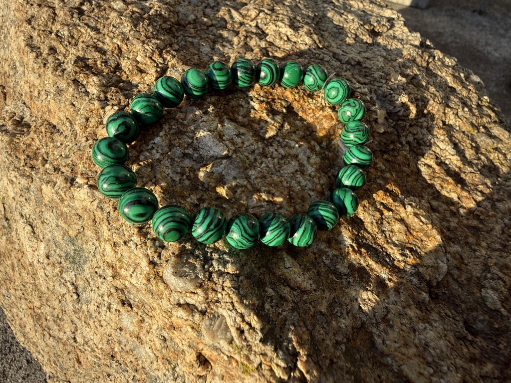 ✨ Tento náramek je vyroben z imitace malachitu – vizuálně věrné varianty inspirované krásou a symbolikou tohoto známého kamene.