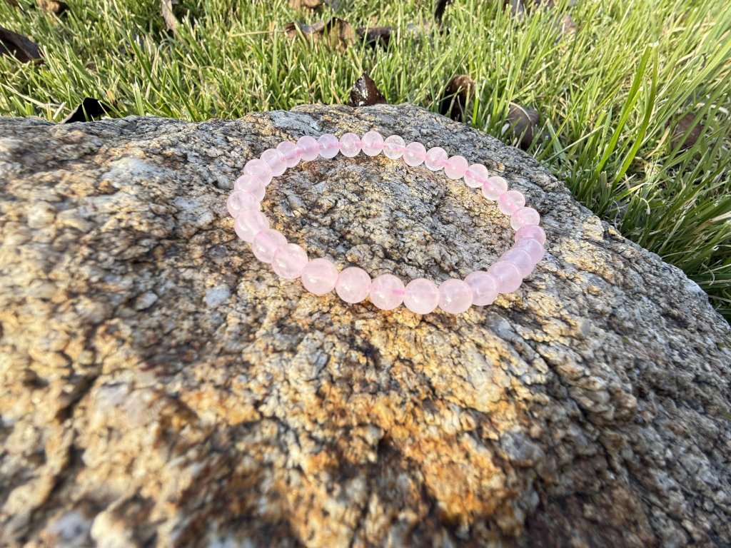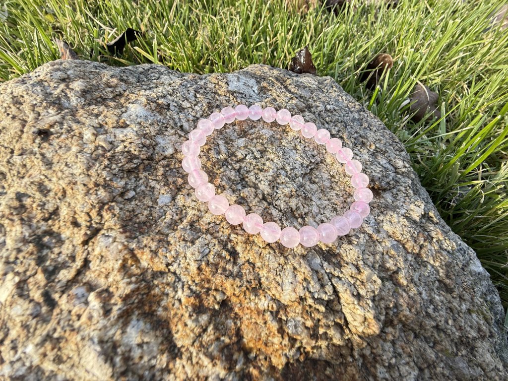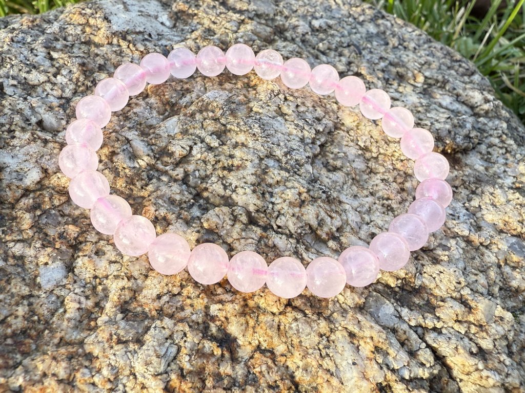 Náramek z jemně růžového drahokamu - dle dávných nauk přináší tento kámen lásku, klid a jemnost. Podporuje srdeční čakru. Velikost náramku 16,5 cm