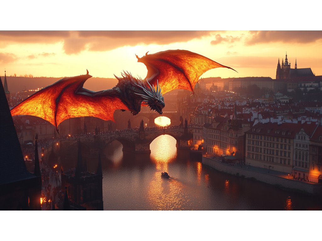 "Bylo pozdní odpoledne a zvon z katedrály svatého Víta právě odbil pátou hodinu. Krátce na to se rozezněla i blízká barokní zvonkohra. Ze svého bytu v Loretánské ulici měl Sabyk výhled na město z impozantní výšky a červené střechy Malé Strany z této pozice vypadaly jako drobné keramické hračky. Perunův vrch, dnes známý jako Petřín, byl krátce po letním slunovratu plný života. Díky vydatným dešťům posledních dnů, které přinesly mírné ochlazení, se šťavnatě zelenal a chladivý vánek přinášel na terasu jemnou vůni kvetoucích stromů. Sabyk si pamatoval, jak to tu vypadalo, když se příslušníci klanu, zrození z lůna Dračí nevěsty, proháněli po okolí na posvátných bílých koních. Všude okolo byl tehdy téměř neprostupný les plný ztepilých dubů a jako jejich protějšek rostly tu a tam jemně ženské, obrovské lípy."