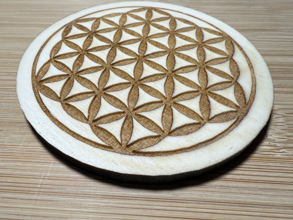 Malá podložka květ života dřevěná (pod skleničku) 10 cm