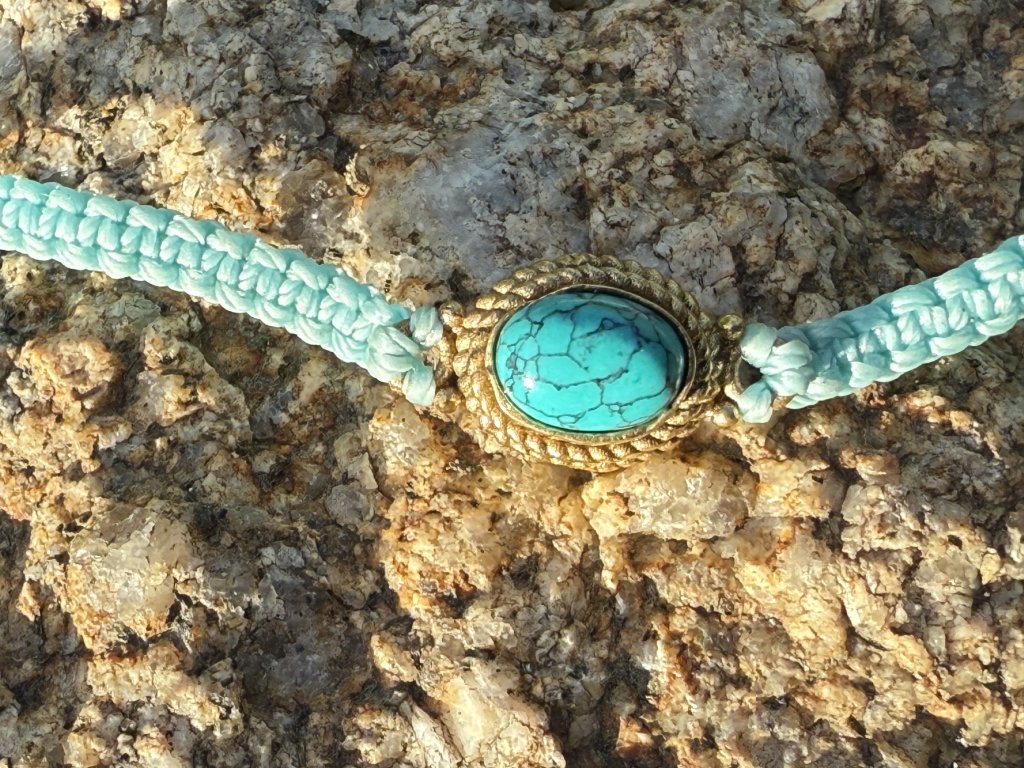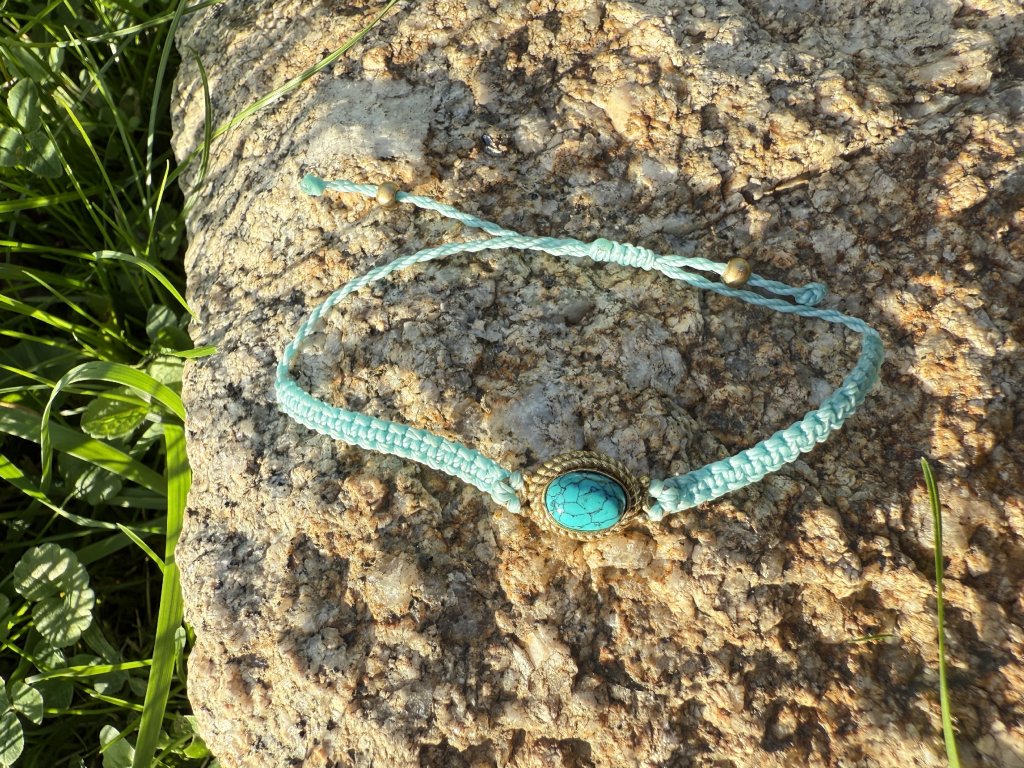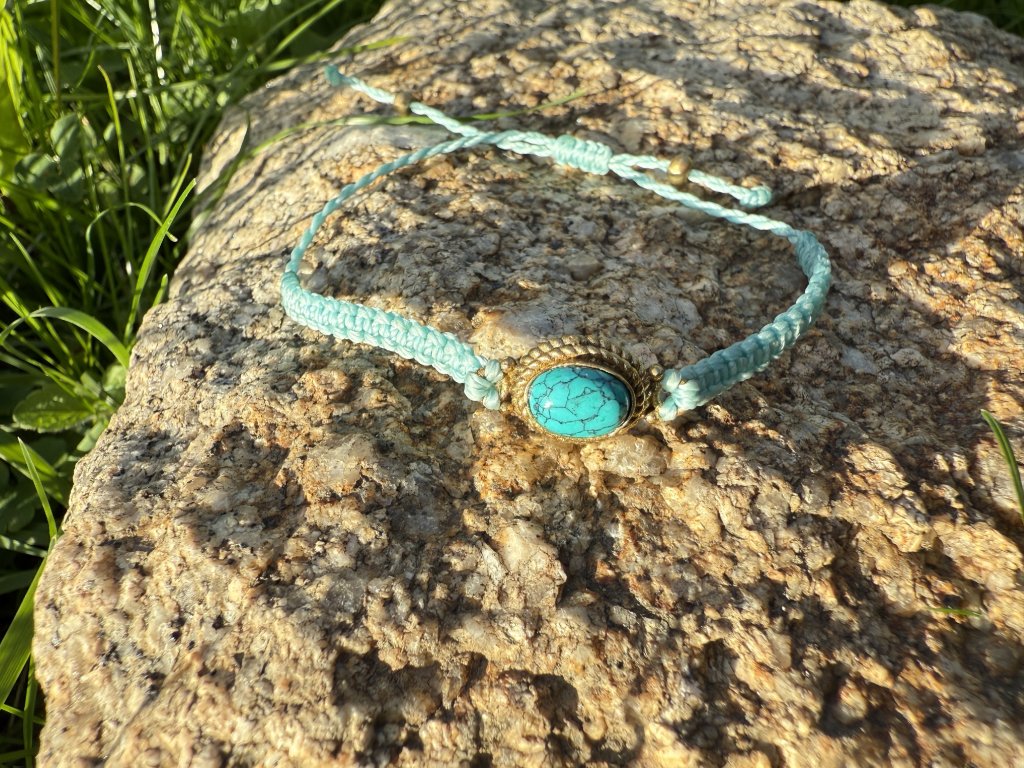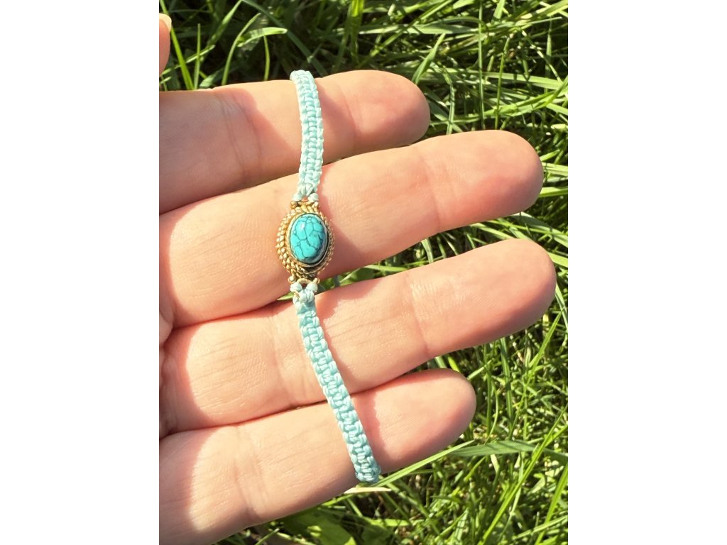 Velice jemný a decentně ženský náramek s drahokamem tyrkysem v mosazném lůžku.
