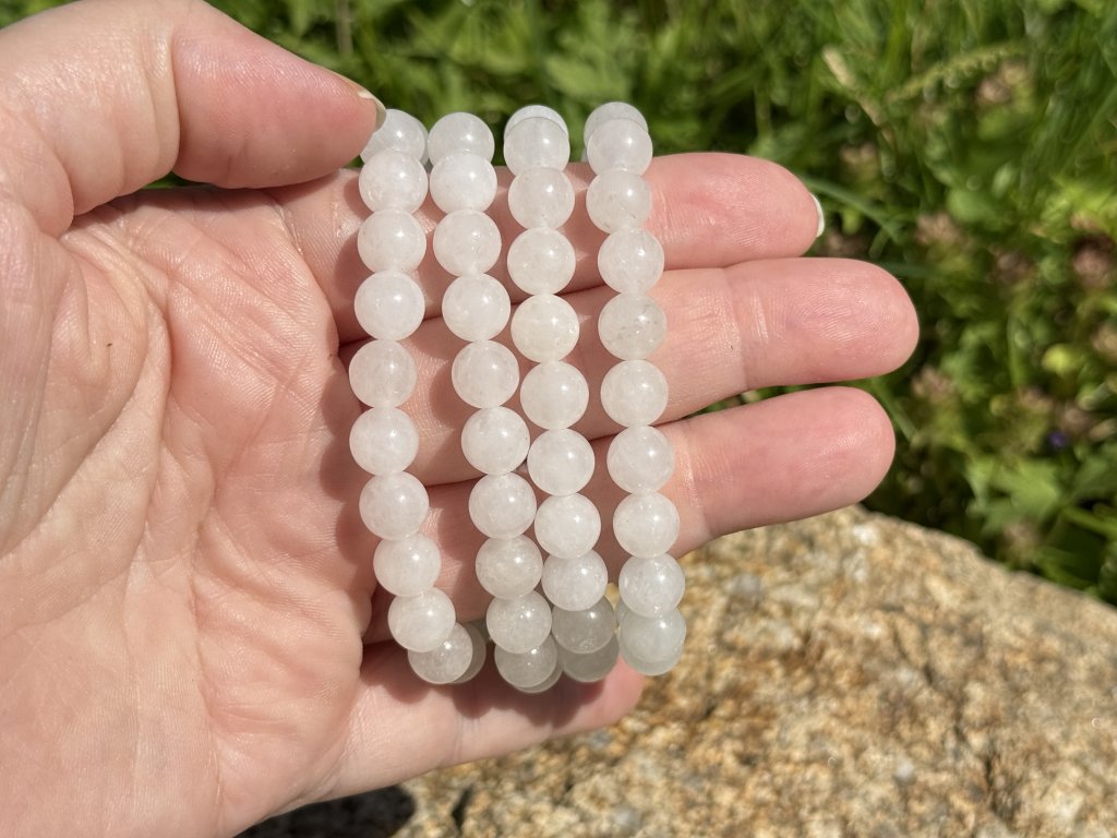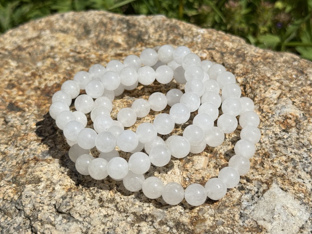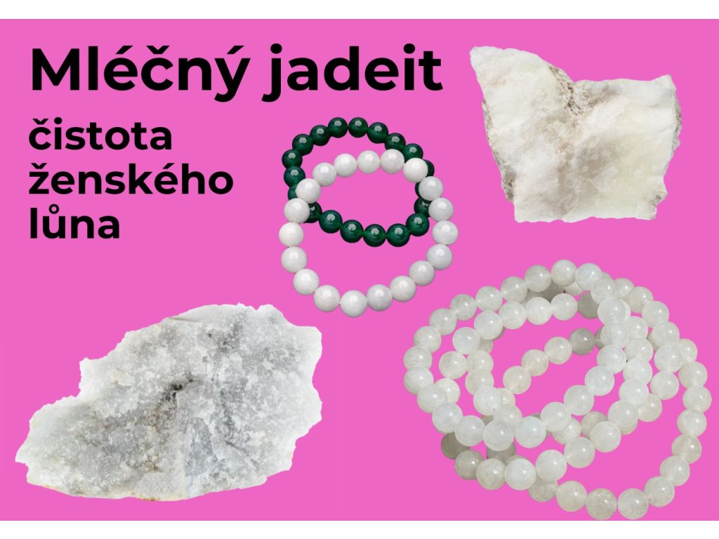 Bílý jadeit je ochranný, očistný a hluboce ženský kámen. Přináší mír do těla i mysli, obnovuje vnitřní rovnováhu a učí nás, že síla ženy vychází z klidu.