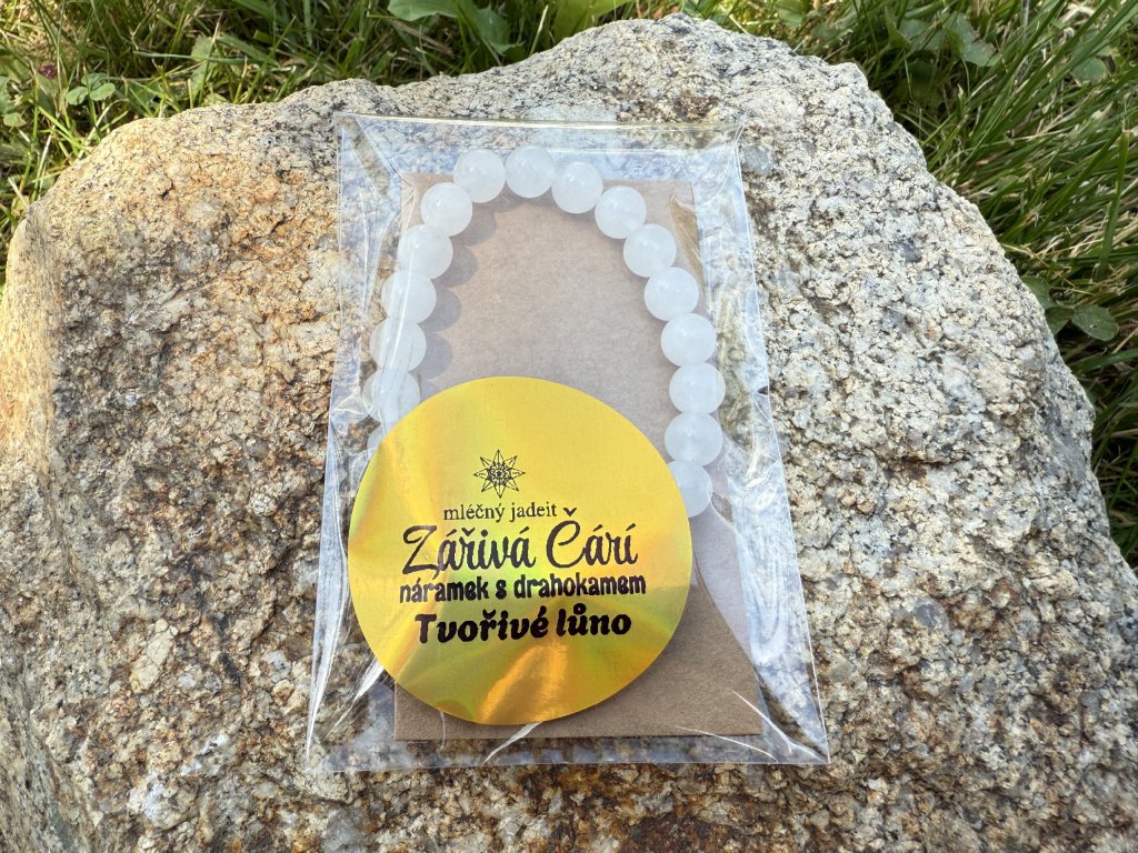 Náramek ZÁŘIVÁ ČÁRÍ drahokam BÍLÝ JADEIT pro sílu ženského LŮNA