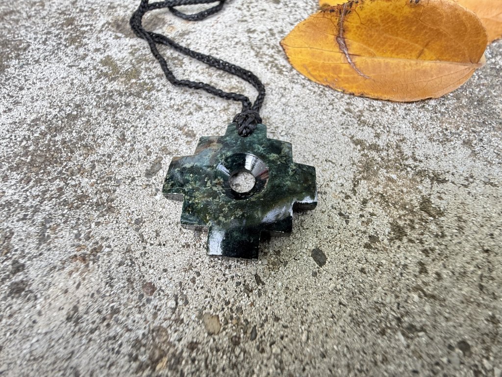 Je vyroben ze dnes vzácného kamene serpentínu, inckého spirituálního kamene s hadí silou Amaru, jež pochází z hory posvátné pevnosti Machu Picchu.