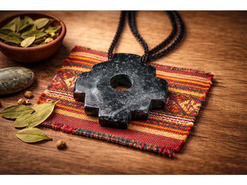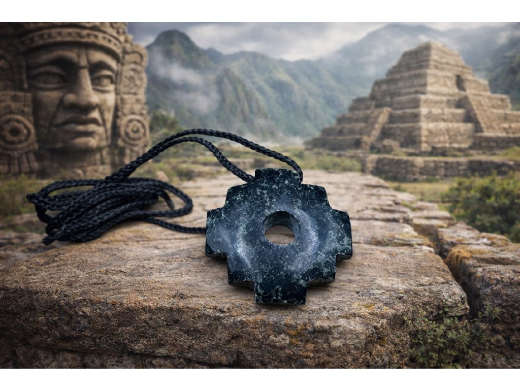 Je vyroben ze dnes vzácného kamene serpentínu, inckého spirituálního kamene s hadí silou Amaru, jež pochází z hory posvátné pevnosti Machu Picchu.