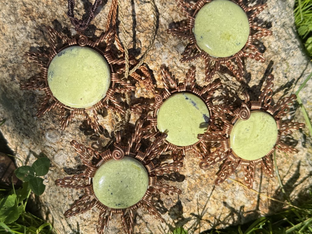 Originální sluníčko vyrobené z měděného drátu a kamene serpentinitu (hadce), dovezený osobně od Peruánských indiánů cestovatelem a badatelem Martinem Pávkem.