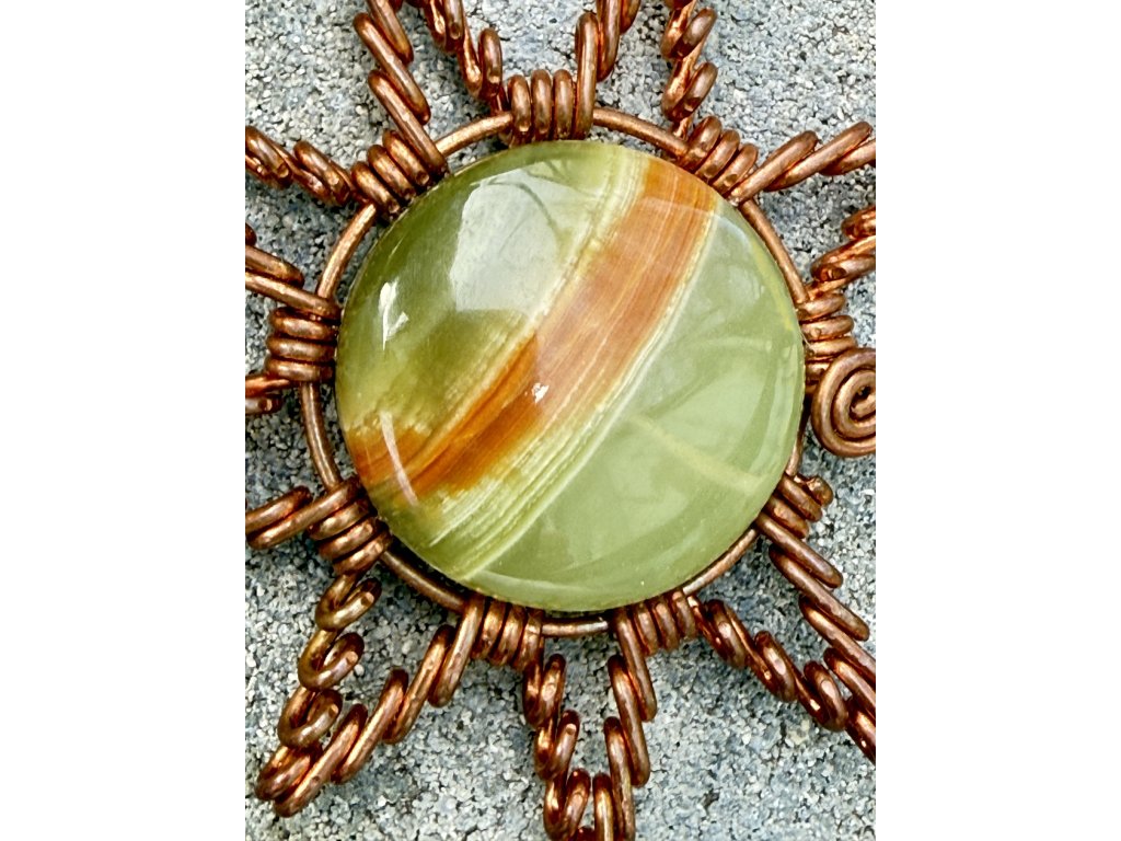 Originální sluníčko vyrobené z měděného drátu a kamene serpentinitu (hadce), dovezený osobně od Peruánských indiánů cestovatelem a badatelem Martinem Pávkem.