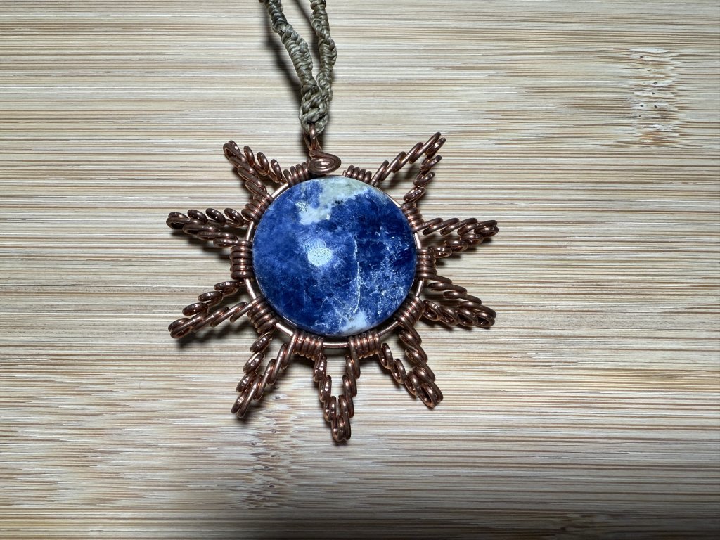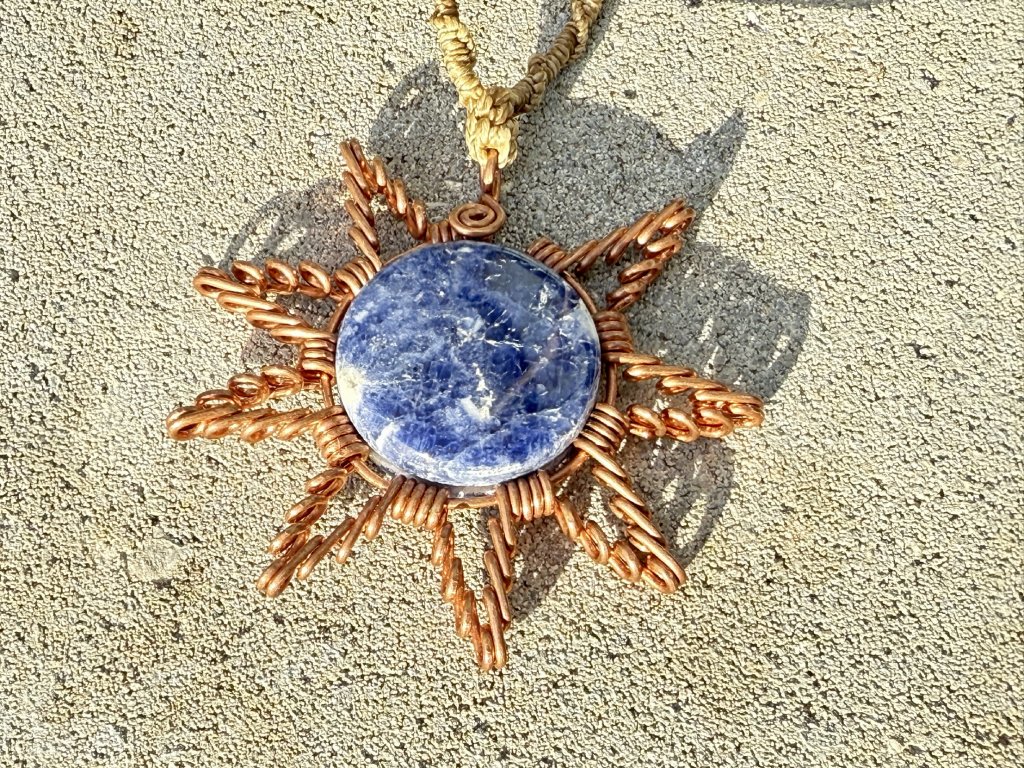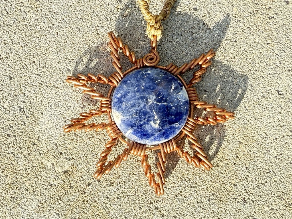 Originální sluníčko vyrobené z měděného drátu a kamene sodalit, dovezený osobně od Peruánských indiánů cestovatelem a badatelem Martinem Pávkem.