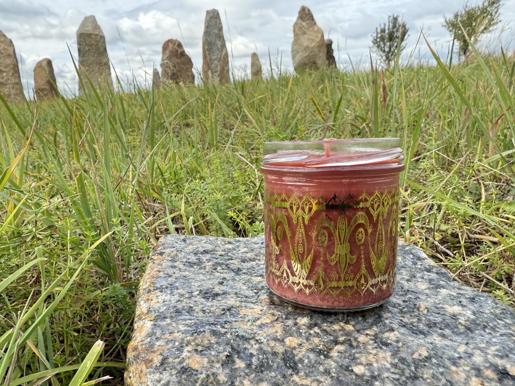 Její sojové složení má čistě přírodní základ 🌿, barva připomíná pozdní tmavě rudé malináče (druh jablka) 🤎 a hoří až 30 hodin ⏳.